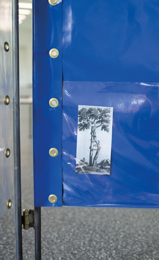 installation with furniture (iron, tarpaulin, sheet, clay, rivets, tape)